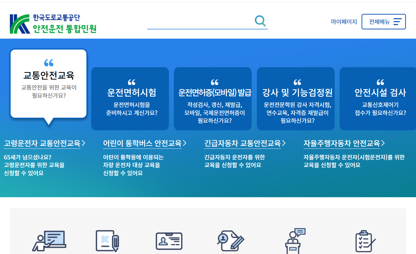 - 도로교통공단 안전운전 통합민원 홈페이지에 접속합니다.