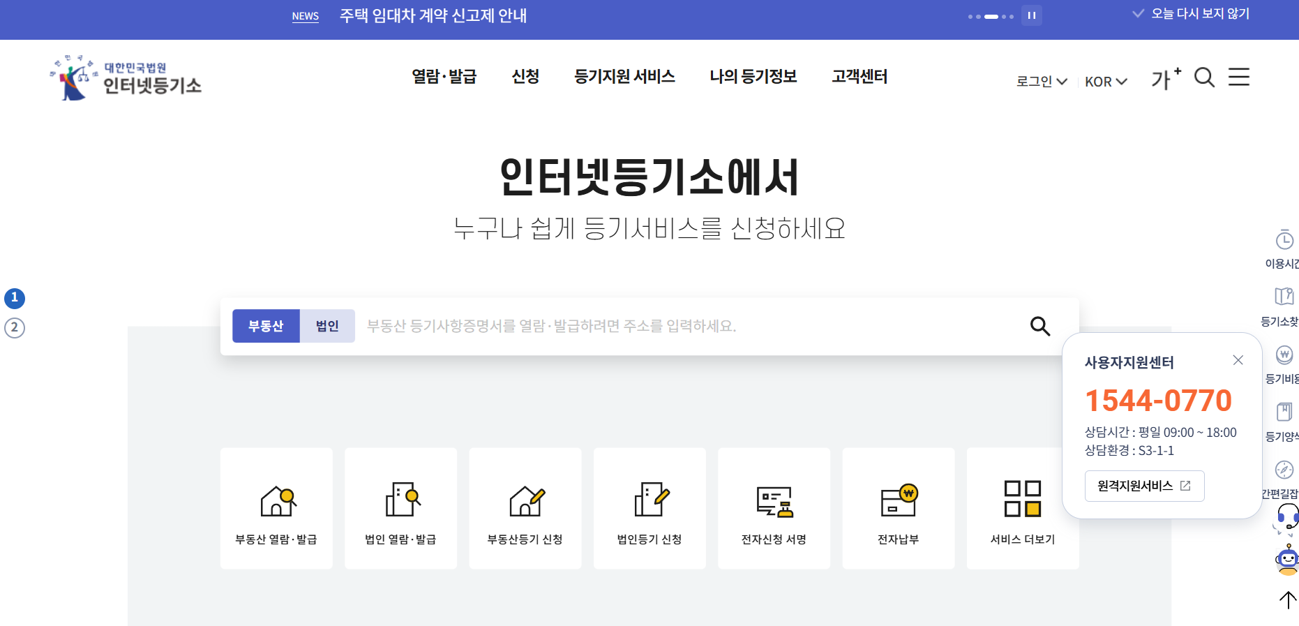 인터넷등기소 서비스를 이용하기 전, 본인에게 필요한 서비스 형태를 먼저 결정해야 합니다.