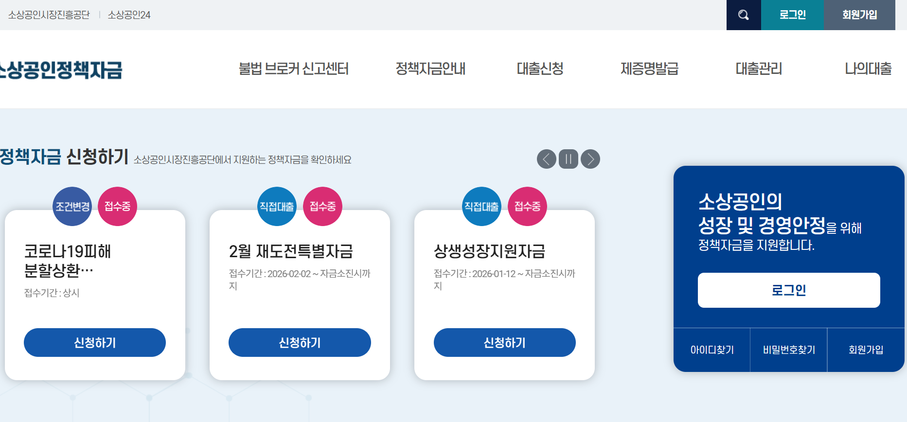 - [저금리 대환대출 신청 바로가기] (주소: ) 소상공인정책자금